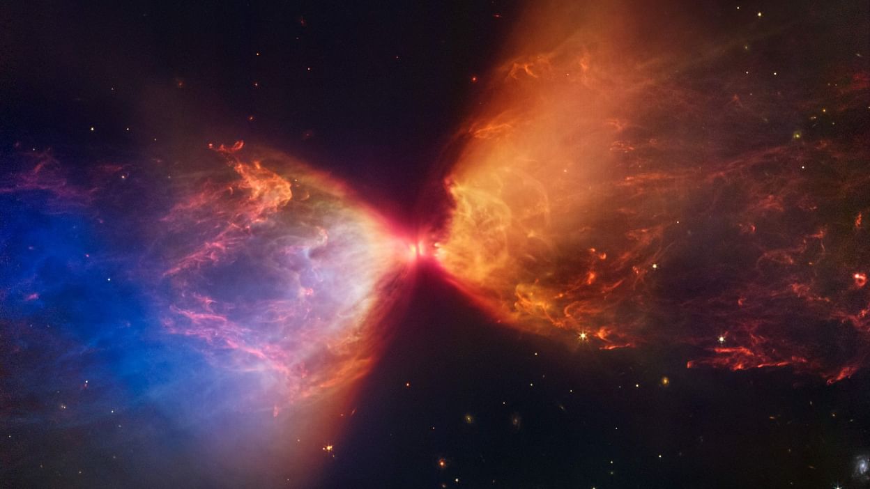 كشف تلسكوب جيمس ويب الفضائي عن صور جديدة مذهلة التقطها لسحابة ضخمة من الغبار على شكل ساعة رملية حول نجم في طور التكوّن.