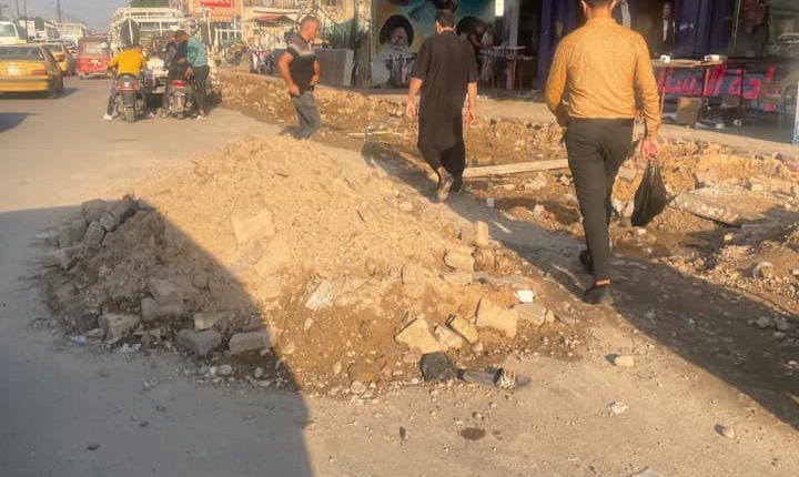 وصلت الى ” المراقب العراقي” رسالة تؤشر وجود حفريات واكوام تراب ورمل في شارع فلسطين في المنطقة المحصورة بين ساحتي النادي التركماني والمصرف !.