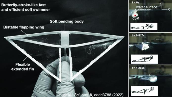 طور باحثون من جامعة نورث كارولاينا، روبوتا ناعما موفرا للطاقة، مستوحى من الميكانيكا الحيوية، يمكنه السباحة أسرع من الروبوتات السبَّاحة السابقة بأكثر من 4 مرات، وأطلقوا عليه اسم “روبوت الفراشة”، لأن حركته في السباحة تشبه الطريقة التي تتحرك بها أذرع الشخص عندما يسبح بضربة الفراشة. وتم الإعلان عن هذه الإنجاز الأحدالماضي في دورية “ساينس أدفانسيس”.