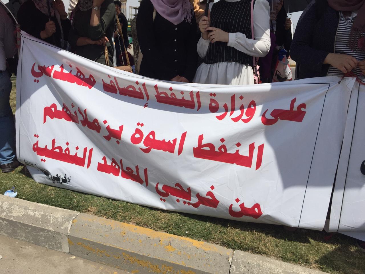 يستمر مهندسو النفط باعتصامهم امام مبنى الوزارة في العاصمة، لليوم الثاني على التوالي للمطالبة بشمولهم بالتعيين المركزي.