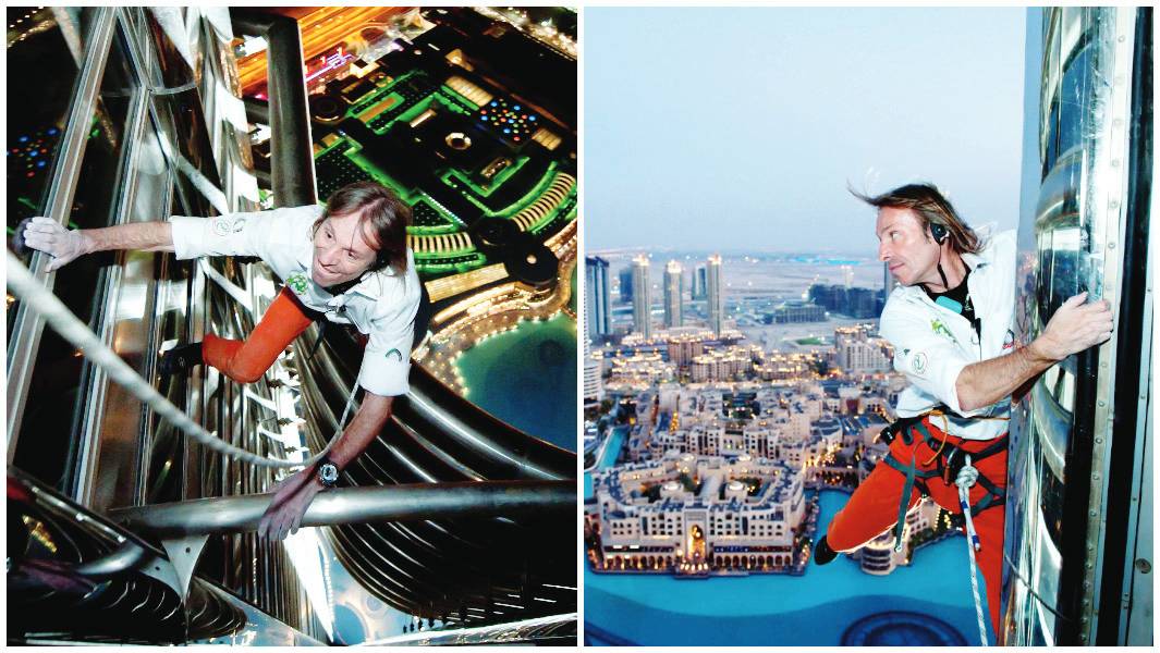 يتسلق الرياضي الفرنسي، ألان روبرت، المباني الشاهقة وناطحات السحاب بأقل عدد من المعدات متسلحا بطباشيره وحذائه المطاطي.