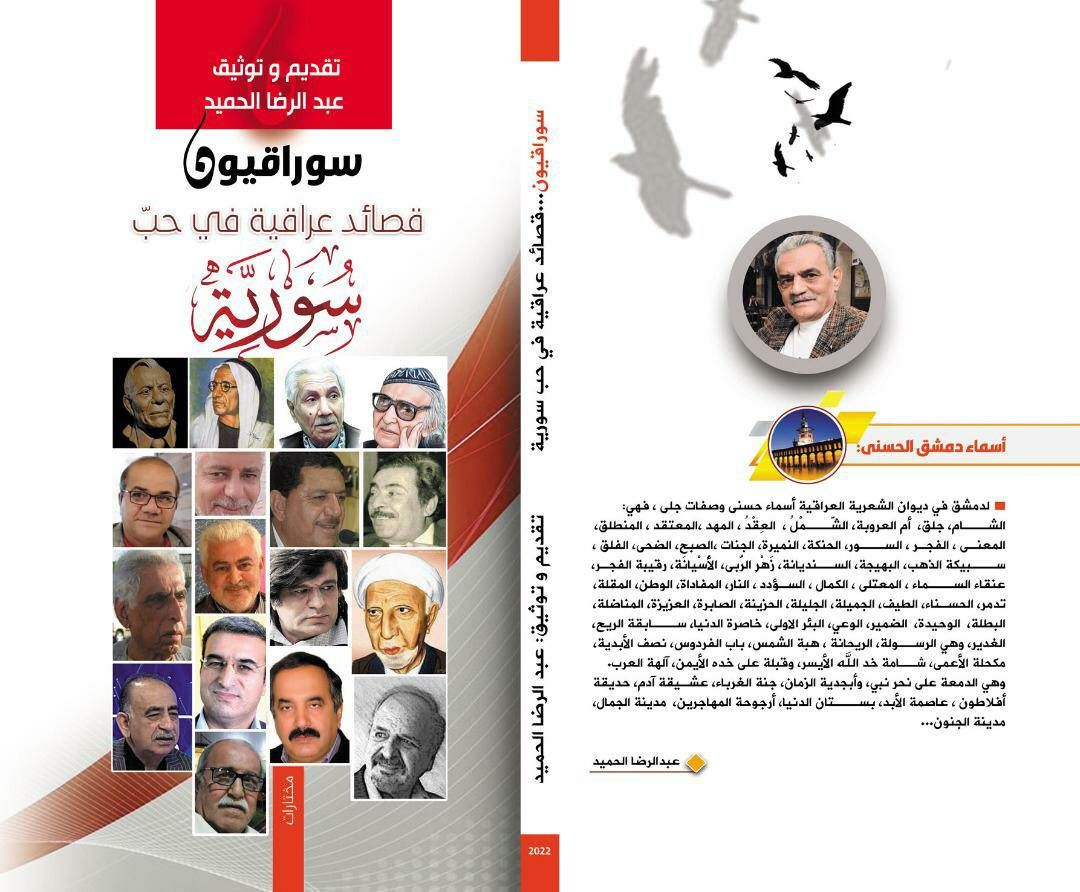 وأضاف: أن (سوراقيون) الصادر عن دار العراب في سورية ودار الصحيفة العربية في بغداد أتاح للمؤلّف المنتج عبد الرضا الحميد أن يكون نقطة الالتقاء المميّزة والبارزة والتي مهمّتها القدرة على أن تكون النصوص الشعرية مشعّةً لدى القارئ، لها اتجاه واحد، لا تحيد عنه، ومنطقة تأويلٍ واحدة لا تقبل التعددية، وإرادة قصدية واحدة لا تحبذ التقسيم، فالهدف المبتغى أنه جمع (بعض النصوص) لشعراء عراقيين أسّسوا لمنطقةٍ مضاءةٍ في شعرهم، كتبوها وأنتجوها بحبّ سوريا، وهي تواجه المعنى الكامل للمواجهة الضدّية، والتالي إعلان التلاحم الإنساني، ولهذا فإن المهمة لم تكن سهلةً على المنتج، لأن الأمر لا يعتمد على جهدٍ مخيّلاتي، بقدر ما يعتمد على جهدٍ أرشيفي، باحثٍ عن النصوص التي تتّصل بالقصدية العليا، وتصوير العنوان.