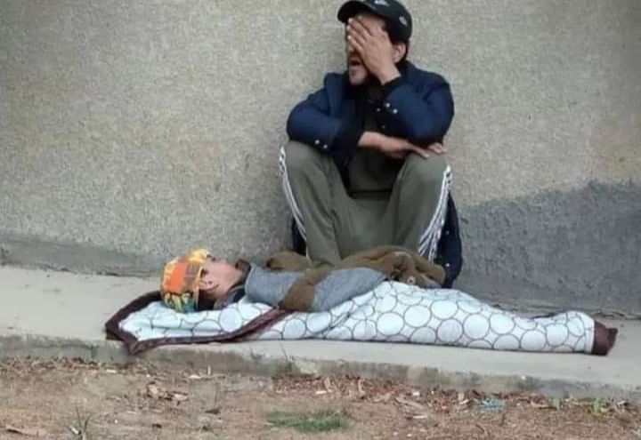 أظهرت صورة انتشرت على مواقع التواصل الاجتماعي، أبا عراقيا يفترش الأرض مع ابنه المريض قيل انها بالقرب من بناية وزارة العمل والشؤون الاجتماعية ببغداد.