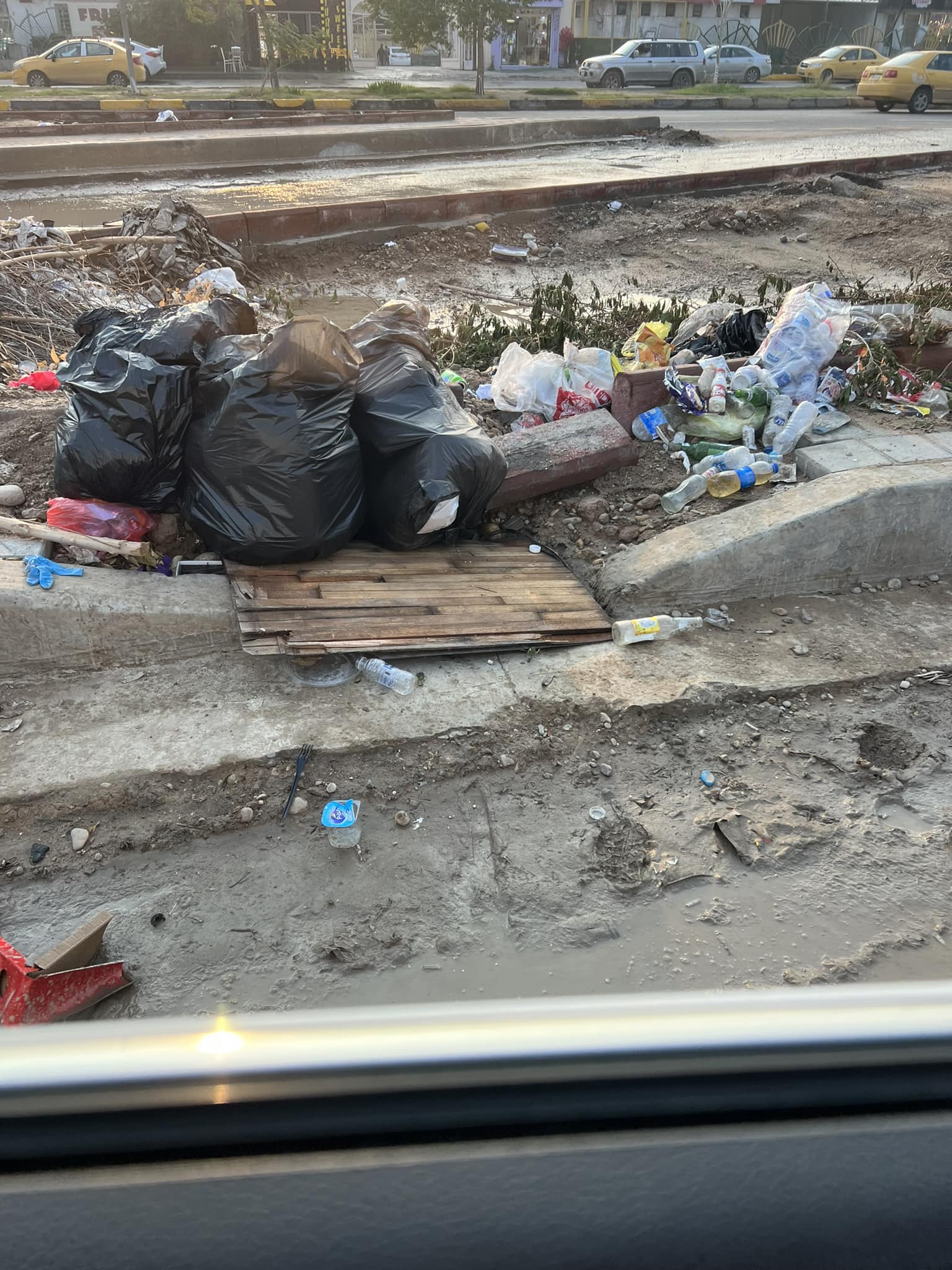 اعادة اعمار الأرصفة تغلق فتحات تصريف أمطار محلة 716