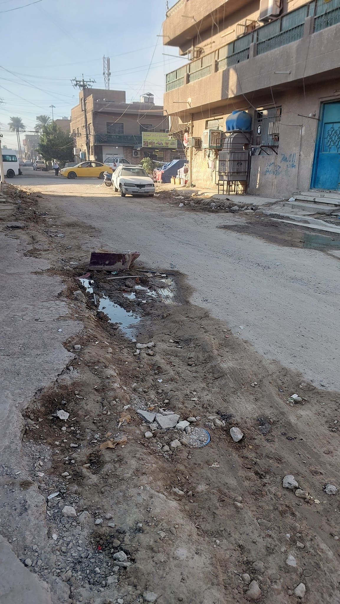 ودعا الاهالي دائرة أمانة بغداد وإعلام دائرة المشاريع الى الالتفات الى هذه المنطقة والعمل على اكمال الاعمال للتخلص من كمية الاتربة الناتجة من عمليات الحفر المقامة تحت عنوان الاعمار والتجديد.