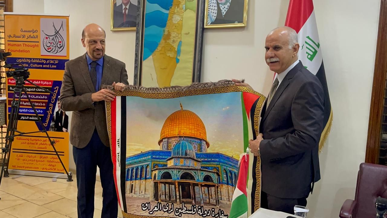 وبينت السفارة أن “السفير الفلسطيني ورداً للجميل قام بتكريم الشالجي في حفل اجراه بالسفارة، وسط حضور شخصيات فلسطينية وعراقية.