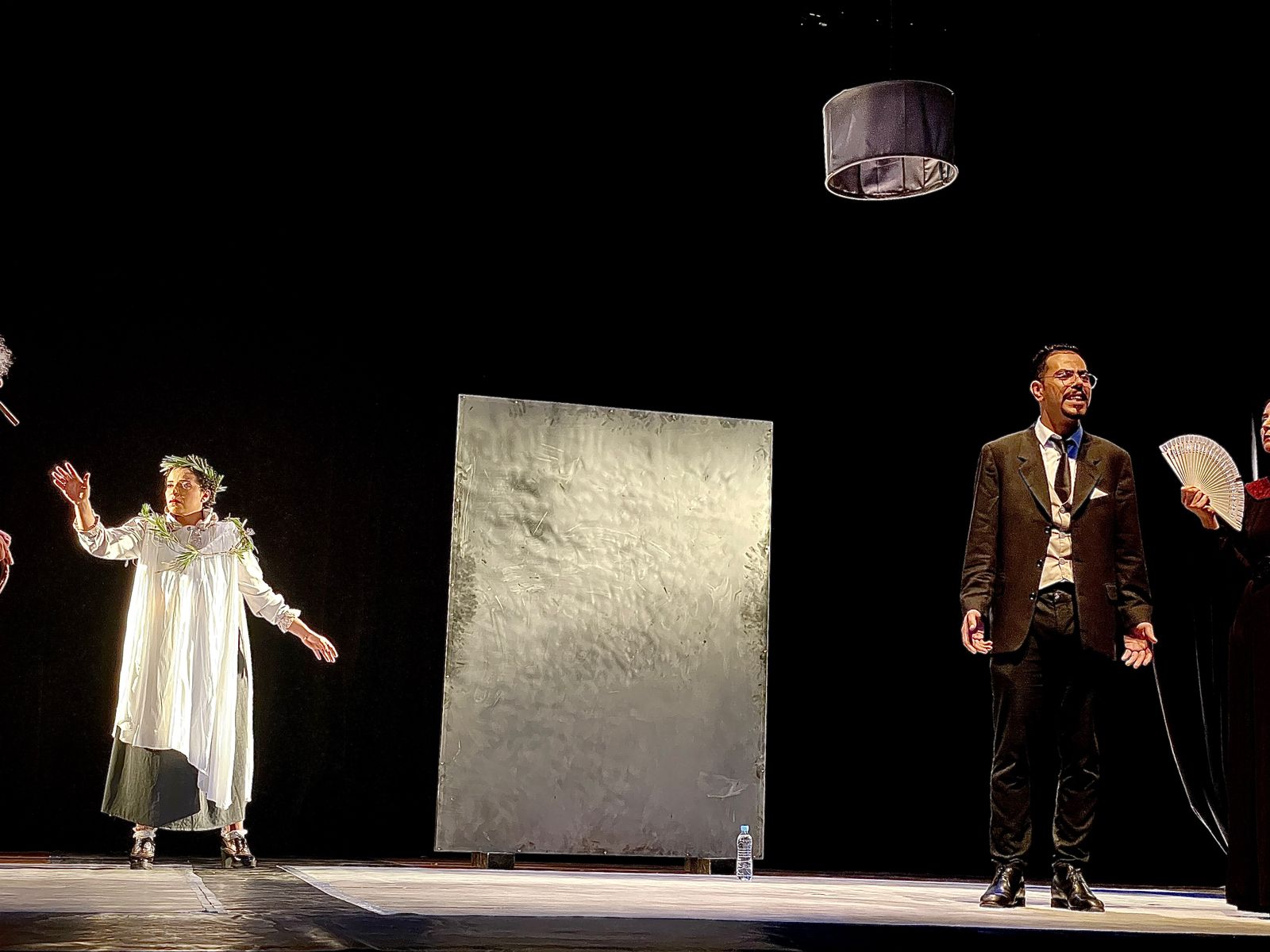 وينطلق العرض، الذي يستغرق نحو الساعة، بطريقة مختلفة عن المعتاد، ففي الوقت الذي ينتظر الجمهور أن تُطفأ أضواء القاعة ليعمّ الصمت ويبدأ المشهد الأول بطريقة كلاسيكية، يقترح المخرج بدلاً من ذلك أن تظل القاعة مُضاءة، وينطلق العرض وسط ثرثرة الجمهور. يبدأ الممثلون مباشرة بقراءة السيناريو على الخشبة ممسكين الأوراق بأيديهم، كما لو أن المشهد يتعلق ببروفة، وليس بأداء فرجوي. يصمت الجالسون في القاعة بالتدريج، محاولين استيعاب ما يحدث. قراءات متعاقبة لسيناريو مفترض، وحوارات متداخلة بثلاثة أشكال لغوية: العربية والدارجة المغربية ممزوجة بالفرنسية.