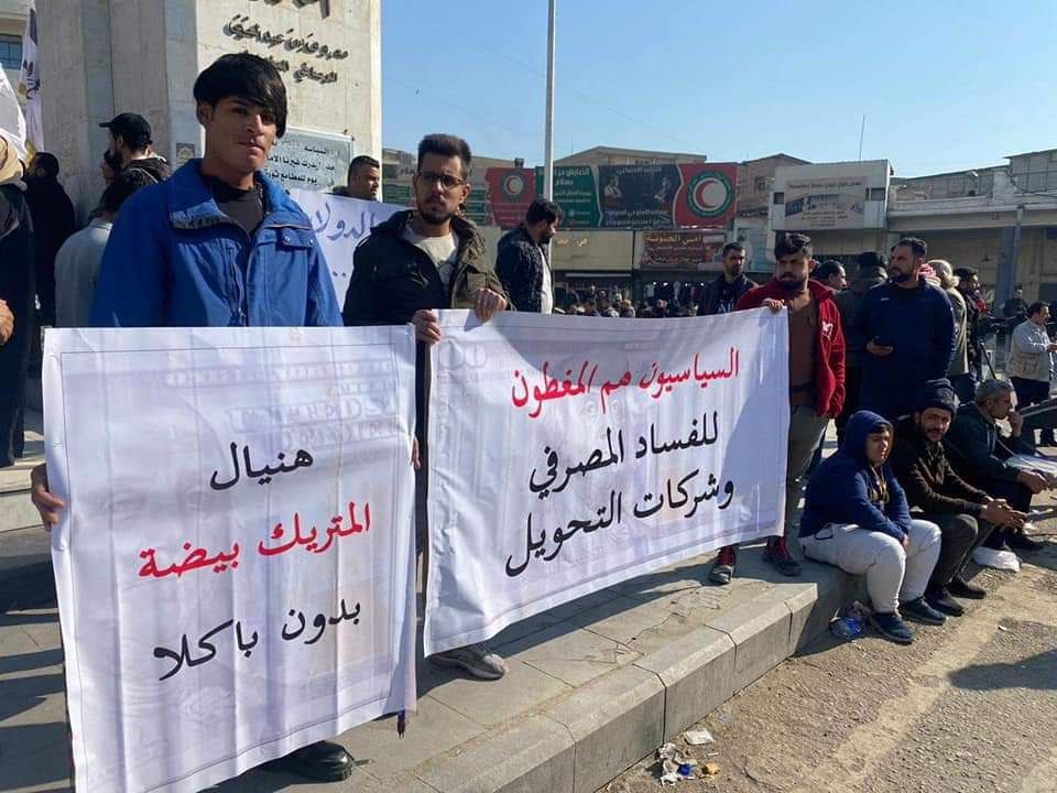 ويقول المتظاهر “كمال الاسدي”، من محافظة بابل، إن “الوقوف الى جانب الشعب مهمة كبيرة يجب أن تتكرر لمنع انهيار العملة الوطنية، مشيرا الى ضرورة استعادة قيمة الدينار العراقي الى سابق عهده وتنشيط السوق وتفعيل دور القطاع الخاص لمنع الانزلاق الى كارثة مالية جديدة كان قد جربها العراقيون قبل سنوات.