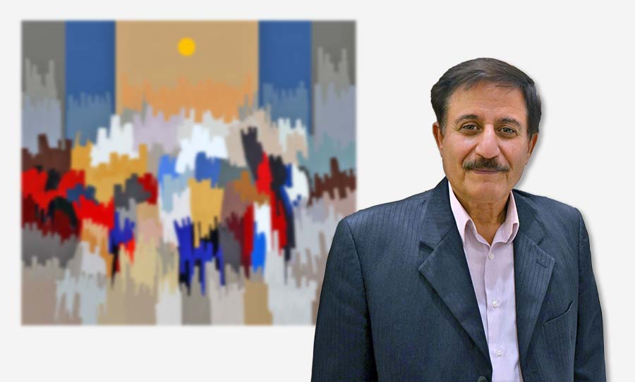 تُشْرِك أعمال الفنان غازي إنعيم (فلسطيني أردني) الثابت والمتحرك، ضمن متوالية شَكْلية ولَوْنِيَّة يحكمها منطق رياضي شديد التلاؤم، مع ما تتخلله من مُخرجات وانزياحات مُعَقْلَنَة بدورها، إذ تخضع العناصر برِمَّتها إلى يقَظة بصرية تخدم مجموع العلاقات والتراكيب، في ما تعمل على تنسيق المُرْفقات الرمزية وتوزيعها بحَذر متناه .