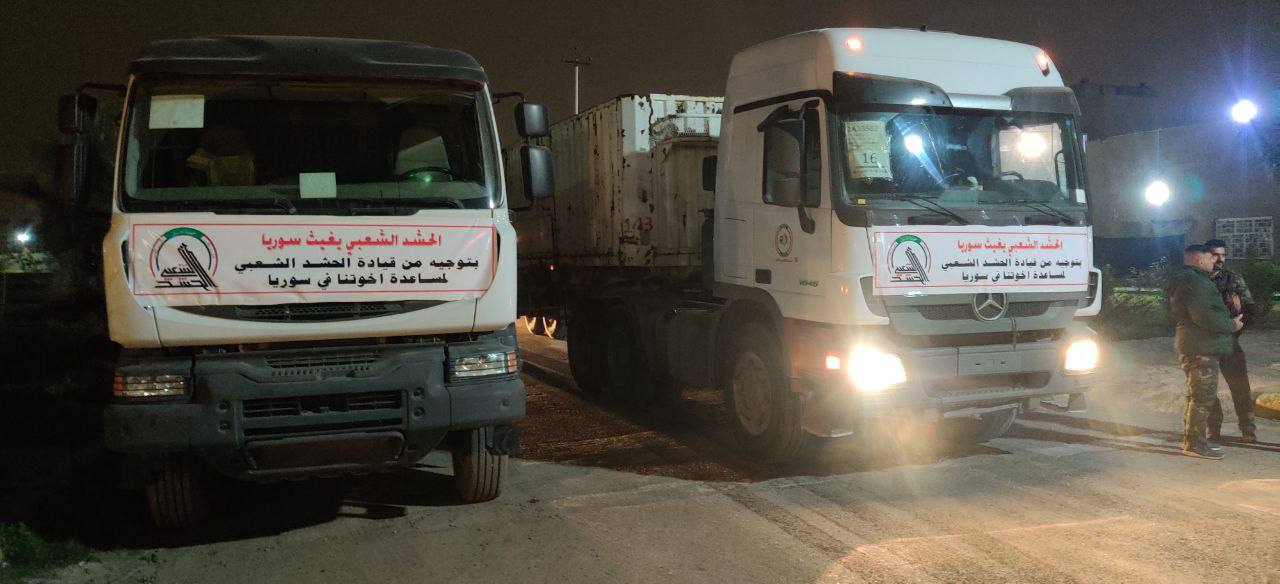 الحشد الشعبي يعلن وصول 120 شاحنة مساعدات متنوعة لضحايا سوريا