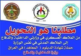 وأضافوا: ان حملة شهادة الدبلوم بحاجة إلى تحويل من الاختصاص العسكري الى المدني وان يتم تضمينهم بموازنة العام الحالي لاسيما أنها لم ترفع بعد من الحكومة ولم يصادق عليها من قبل البرلمان .