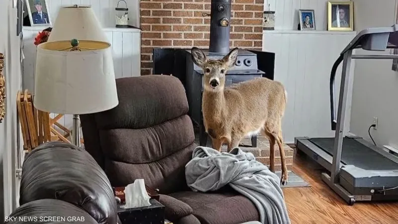 ذعر زوجان كنديان من احتمال وجود لص في منزلهما، ليتبين فيما بعد أن غزالا اقتحم المكان من النافذة.