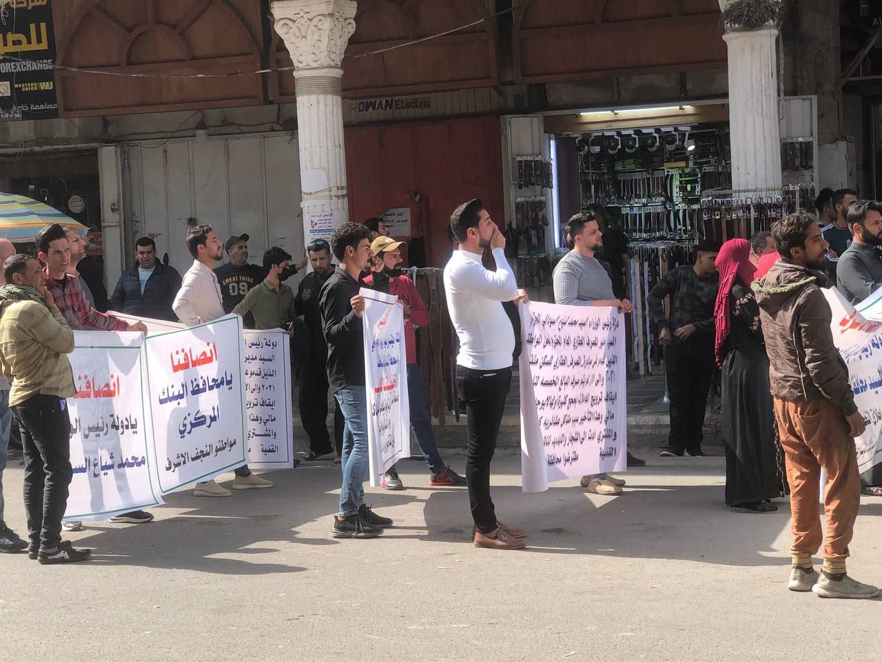 تظاهر العشرات من المقترضين، امس الاثنين، أمام مبنى البنك المركزي العراقي وسط العاصمة بغداد، للمطالبة بإطلاق التخصيصات المالية لقروضهم.