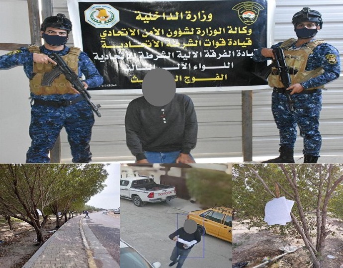 وقالت الوزارة، في بيان تلقت “المراقب العراقي” نسخة منه إنه “وبعمل ميداني مكثّف ومتابعة دقيقة لمنظومة كاميرات المراقبة، تمكّنت قوة من اللواء الآلي الثالث الفرقة الآلية شرطة اتحادية بمساندة مفارز الجهد الاستخباري، من إلقاء القبض على متهم في منطقة البياع يقوم بتوزيع منشورات تسيء للمعتقدات والمعارف الدينية في محاولة لبث الفتن الطائفية والتفريق بين المسلمين”.