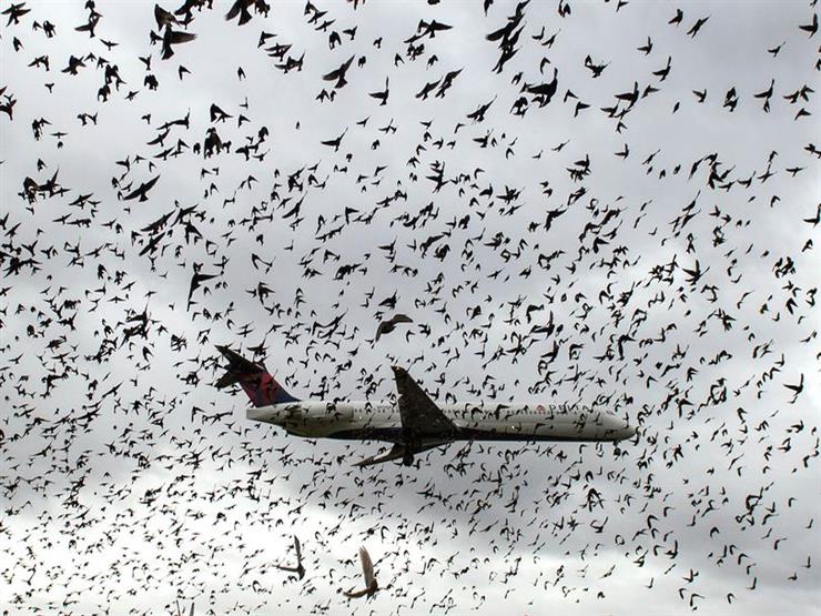 سرب طيور يثير الرعب داخل طائرة