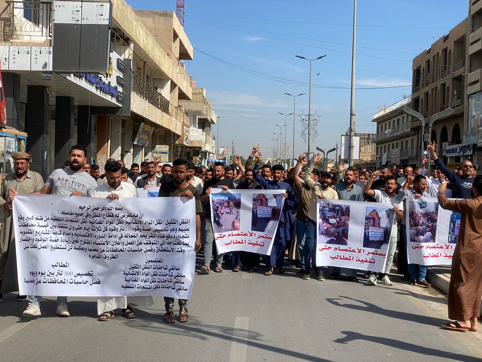 تظاهر المئات من سائقي الشاحنات في واسط أمام مبنى فرع توزيع مشتقات واسط النفطية، احتجاجا على خفض حصتهم من وقود الكازولين ومنعهم من التجهيز من المحافظات الأخرى.