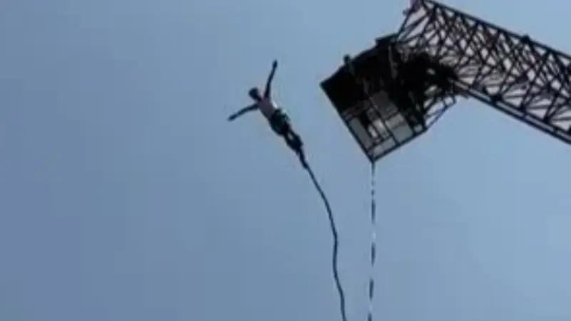 وأظهر الفيديو شخصاً قفز من رافعة على ارتفاع شاهق بالحبل نحو بحيرة بالأسفل، لكن الحبل الذي كان يفترض أن يحميه انقطع، مما أدى إلى اصطدام عنيف بالمياه، وفقد على أثره الشخص الوعي لبعض الوقت كما أصيب بجروح. وذكرت صحيفة “ديلي ميل” البريطانية، أن الحادثة وقعت في تايلاند .وقالت، إن ارتفاع الرافعة كان 30 مترا، وهو ما يعادل ارتفاع 10 طوابق، كما تقوم لعبة القفز بالحبال على الوثب من ارتفاع شاهق، وهو أمر يبدو خطيرا للغاية وغير مناسب لأصحاب القلوب الضعيفة، لكن ما يحمي ممارس هذه اللعبة هو الحبل الذي يربط به، لكن إن انقطع وقع المحظور.