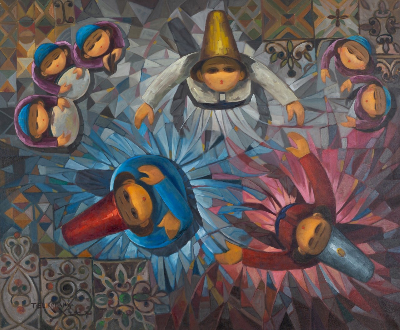 والجوبلان هو نوع من النسيج عرفته معظم الحضارات القديمة يصنع بخيوط من الصوف الملون لإنجاز أشكال ورسوم. تراوح هذه الأشكال والرسوم بين الزخارف التقليدية والمناظر الطبيعة الزاخرة بالحركة والتناغم، وتتوقف قيمة الجوبلان على براعة الصنعة ودقة النسيج. أما الخيامية فهي أحد الحرف التقليدية التي كانت منتشرة في مصر قديماً وارتبط ظهورها بكسوة الكعبة، وتعتمد على رسم الأشكال والزخارف، عن طريق قصاصات الأقمشة الملونة. هما وسيطان تراثيان تقليديان ومتداولان، اعتدنا أن يكونا إما حاملين لمحتوى بصري لا يتمتع غالباً بالأصالة، أو محتوى مُغرق في التبسيط وبأسلوب زخرفي أو فطري.