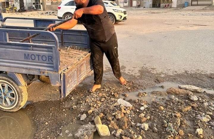 سائق “ستوتة” في الديوانية يرمم شوارع مدينته