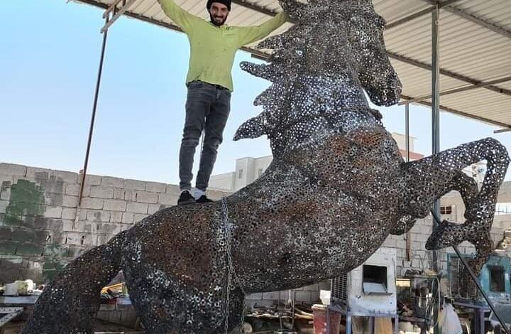 إذ تمكّن عادل محمد عبد، وزملاؤه الحدادون من الفلوجة، من صنع مجسم لحصان عربي بارتفاع ٤ أمتار من آلاف القطع من “الواشرات”.
