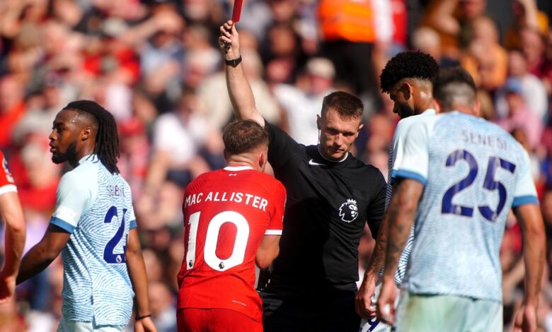 وتعرض ماك أليستر للطرد في الشوط الثاني من مواجهة بورنموث، التي انتهت بفوز الريدز (3-1)، عقب تدخل قوي على ريان كريستي.