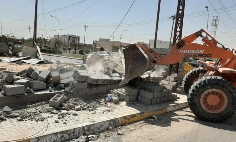 إزالة محال تجارية متجاوزة تعطل مشاريع بنى تحتية في البصرة