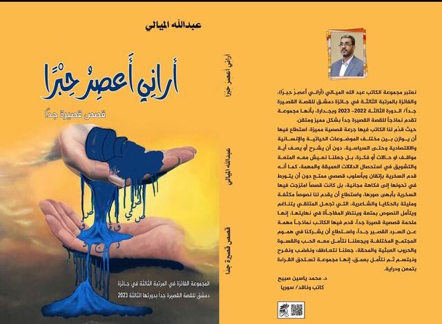 وأضاف : إن” هذه المجموعة القصصية هي المجموعة الفائزة بالمرتبة الثالثة في مسابقة جائزة دمشق للقصة القصيرة جدا لعام ٢٠٢٣ الدورة الثالثة التي شارك فيها المئات من كتاب القصة القصة جدا العرب”.