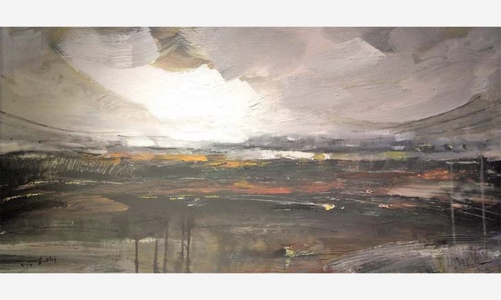 الأسود والرمادي هو المسيطر على أغلب اللوحات، وهي ألوان تجسد حالة الكون الأولى إن جاز التعبير قبل انفصال الأرض عن السماء، وفق الأساطير أو القصص الديني، سديم وغبار، لكن في الوقت نفسه ـ حالة التضاد أو المفارقة المزمنة ـ هناك لمحات من ضوء ساطع، أو لون مختلف على صغره مقارنة بألوان اللوحة المسيطرة، يبدو تفرده وتأكيد وجوده، ربما تجسيد لحالة المعرفة، لكنها بما أنها (معرفة) فهي متواضعة وتعرف وجودها جيداً، ومن هنا تكمن قيمتها، أو تحقق ذاتها. وفي الأخير تصبح اللوحات عبارة عن حالات شعورية متناغمة تنفي التشخيص وتؤكد وجوده في آن معًا ما يجعلها قابلة للعديد من التأويلات، كحالة فلسفية في المقام الأول.