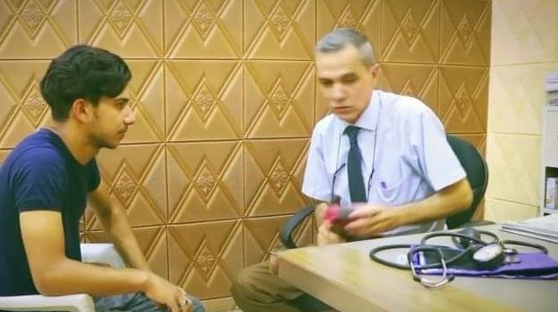 يجتهد الطبيب أياد من ريف منطقة حديثة في الانبار بمعالجة الأطفال وحديثي الولادة بالمجان في عيادته التي تكتظ بالمراجعين.