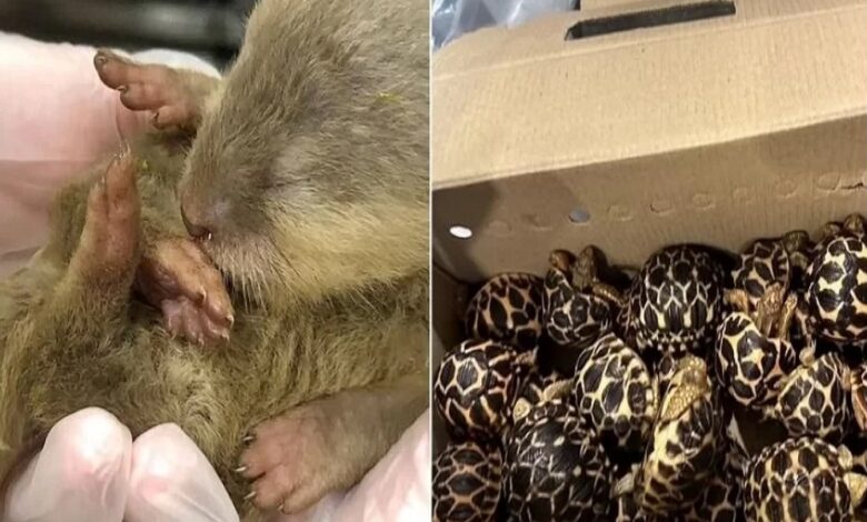وأعلنت السلطات التايوانية، أنها ضبطت 28 سلحفاة واثنتين من ثعالب الماء وحيوان الغرير واثنين من القوارض المجهولة، عثر عليها نافقة بعد هبوط الطائرة في مطار تايوان، فيما اضافت السلطات أن شخصين يشتبه بتورطهما في تهريب الحيوانات يخضعان للتحقيق.