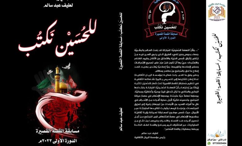 صدر مؤخرًا عن دار السرد الروائي في بغداد، كتاب (للحُسَين نَكْتُب.. مسابقة القصة القصيرة – الدورة الأولى 2023م)، وهو الإصدار الأول الذي أنجزته (مؤسسة البيان الثقافية)، على الرغم من حداثة تشكيلها.