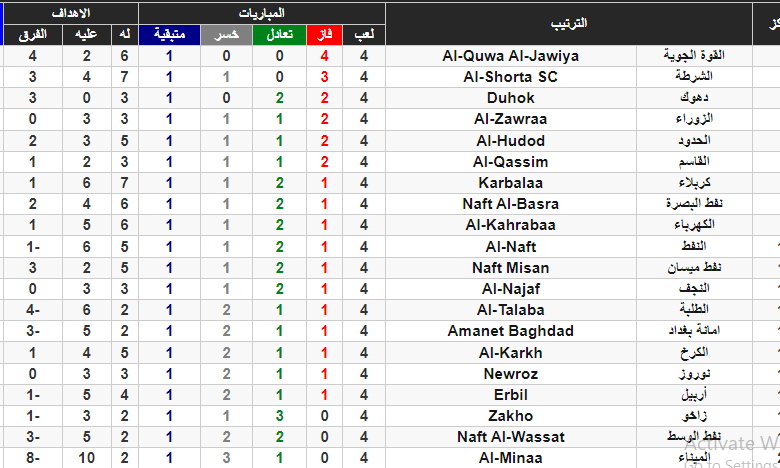 يُشار الى أن فريق القوة الجوية نجح بالبقاء في صدارة دوري نجوم العراق بعد نهاية الجولة الرابعة برصيد 12 نقطة، بينما حل نادي الشرطة ثانيا برصيد 9 نقاط، وجاء نادي دهوك ثالثا برصيد 8 نقاط، فالزوراء رابعاً برصيد 7 نقاط.