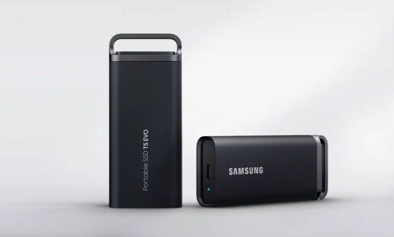 كشفت سامسونج عن قرص T5 EVO، وهو قرص الحالة الصلبة (SSD) المحمول والخفيف الوزن الذي يوفر حجمًا يصل إلى 8 تيرابايت، وهو الحجم الأكبر الذي تقدمه حاليًا أقراص SSD المحمولة المتوفرة في السوق.