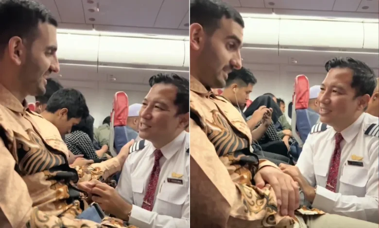 وأظهر المقطع الذي نشر على منصة “تيك توك”- الطيار وهو ذاهب إلى مقعد الراكب عبد الله، قبل ان يجلس أمامه، ويتبادلان بعض الكلمات بلغة عربية بسيطة.