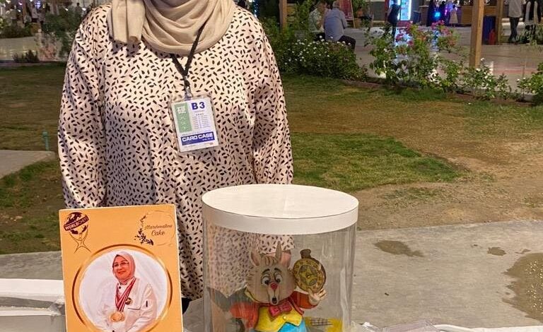 تبدع سحر عدنان من محافظة بابل بصناعة الكيك والمخبوزات على شكل مجسمات نحتية “ثري دي” تعكس التراث الشعبي العراقي.
