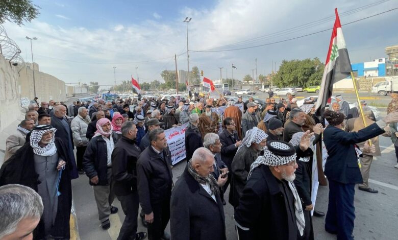 رصدت “عين الرقيب” متقاعدين يتظاهرون أمام مدخل الخضراء، مطالبين بسن قانون التقاعد الموحد، مؤكدين ضرورة تعديل القانون ومساواتهم بأقرانهم، بسبب الفرق في الرواتب بين المتقاعدين قبل تعديل القانون عام 2014 وبعده.