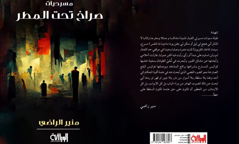 صدر للمؤلف والمخرج منير راضي العبودي مجموعته المسرحية الجديدة التي تحمل عنوان “صراخ تحت المطر” عن دار الورشة الثقافية في شارع المتنبي مكتوبة عن مرارة الواقع االعراقي الراهن.