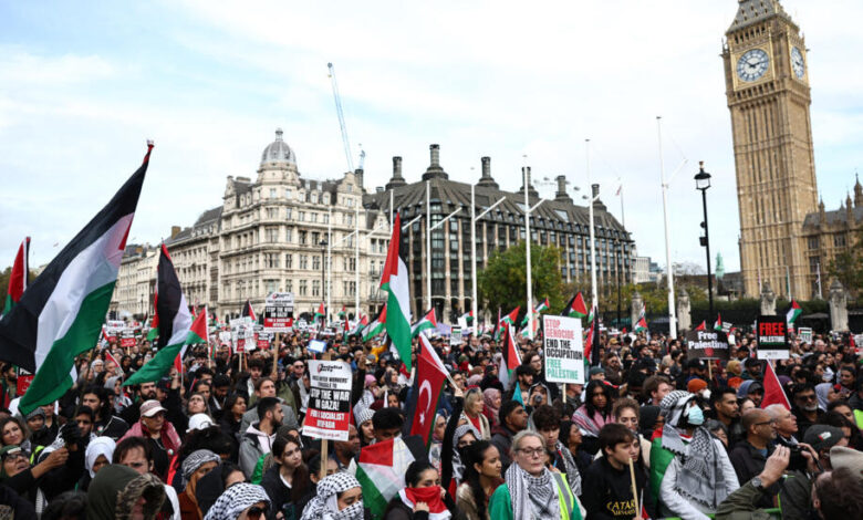 تظاهرات في بريطانيا لـ”نشطاء سلام” تأييداً لفلسطين واليمن