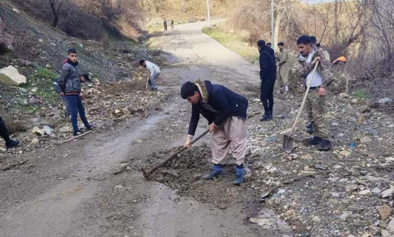 بعد ان اغلقتها الحجارة والأشجار المتساقطة والاوحال بسبب موجات الامطار، اطلق سكان قرية بشدر شمالي السليمانية حملة لفتح الطرق الجبلية الوعرة