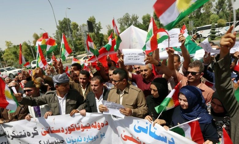 ومنذ أشهر عدة، يستمر موظفو إقليم كردستان بالتظاهرات، احتجاجاً على تأخر صرف رواتبهم من قبل أربيل، ولم تنجح جميع مساعي بغداد عبر ارسال دفعات مالية الى أربيل، في حل القضية خاصة مع تعنت الإقليم بقراراته، الأمر الذي دعا تقديم دعوى لدى المحكمة الاتحادية من قبل بعض الأحزاب الكردية للبت بالقضية، وحسم مسألة الرواتب عبر ربطها بمصارف الحكومة الاتحادية بصورة مباشرة.
