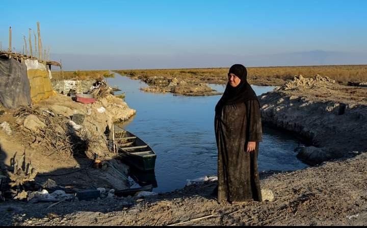 منذ طفولتها، تعيش الحاجة فاطمة او كما تلقب بـ”الزايرة” لوحدها في منطقة معزولة وسط اهوار الجابيش في الناصرية منذ نحو 20 عاما برفقة حيواناتها.