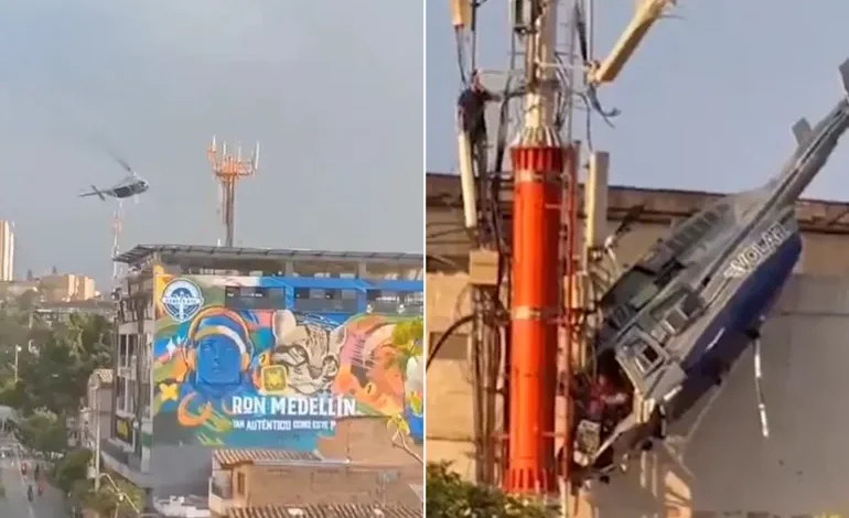تحطمت مروحية بجانب مبنى شاهق بمدينة ميدين في كولومبيا، بعدما فقد قائد الرحلة السياحية السيطرة على الطائرة.