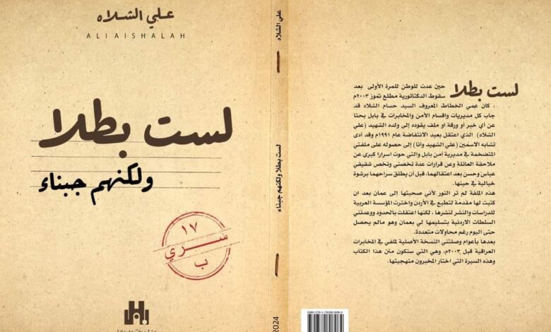 صدر عن منشورات بابل، كتاب الشاعر د. علي الشلاه، “لست بطلا ولكنهم جبناء” وهو شبه سيرة ذاتية يقول في مقدمتها..