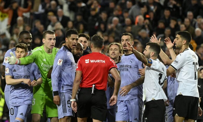 وشهدت المباراة جدلا تحكيميا كبيرا بسبب إطلاق الحكم خيل مانزانو صافرة النهاية ورأسية جود بيلينجهام في طريقها لمرمى فالنسيا.