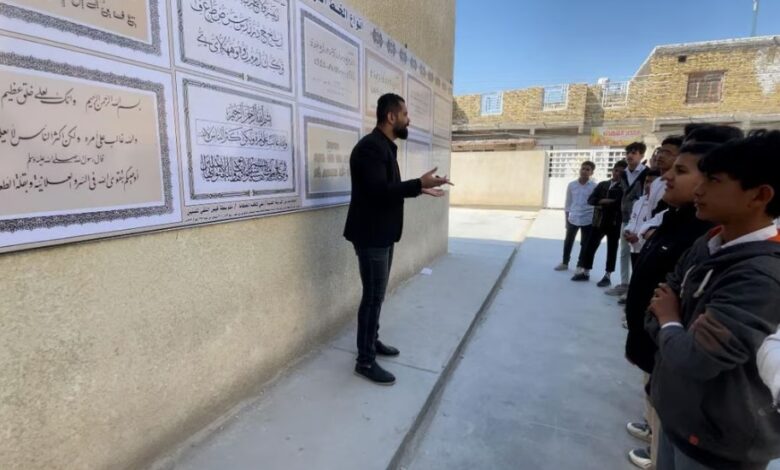 الخط العربي يزين جدران مدرسة في سوق الشيوخ