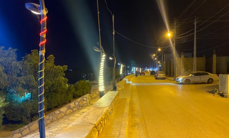 واضاف: “تطوع بقية أصدقائنا وعددهم 7 أشخاص لمساعدتنا في تزيين وإضاءة 35 عاموداً خلال 3 أيام”.