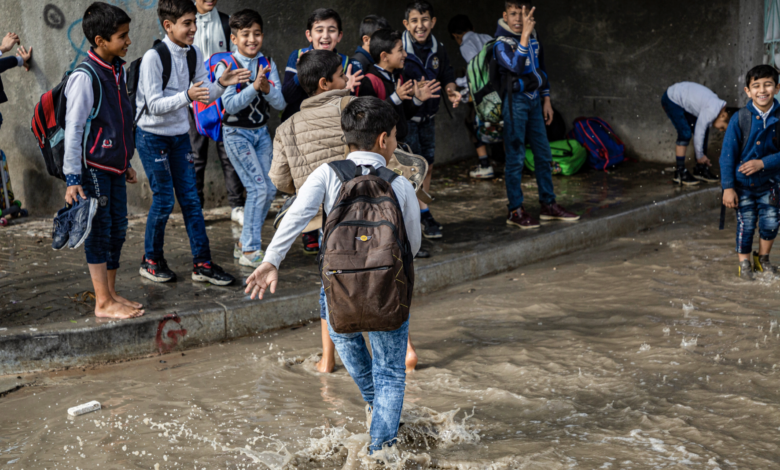 غزارة الأمطار تعطل الدوام الرسمي في المدارس الكرفانية