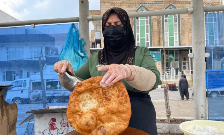 في موقف للحافلات على أحد أرصفة السليمانية، تنتظر شبول أحمد بفارغ الصبر لتبيع خبزا يُعرف محليا بتسمية “ناو صاجي”، لكنها تلاحظ تراجعا في إقبال الزبائن مقارنة بالأعوام الماضية.