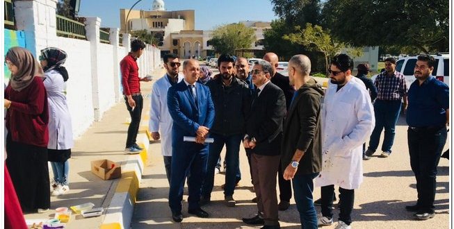 انجز شاب من الكوفة، جدارية على أحد جدران كليته، بشكل تطوعي وبتمويل ذاتي، اهداءً للمكان الذي تعلّم فيه.