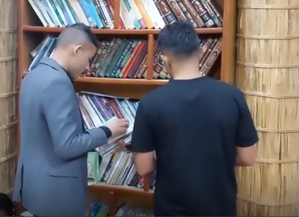 مكتبة في أحد مضايف القصب بالناصرية